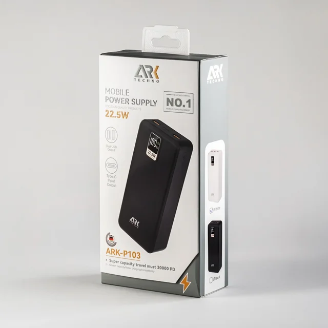 2.پاور بانک 30000 با خروجی 22.5 وات ark p103( 6ماه ضمانت)