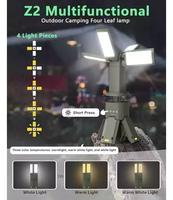 با چراغ کمپینگ چهار جهته مدل CAMPING LIGHT Z2، تجربهای روشن و لذتبخش از شبهای کمپینگ خود داشته باشید! این چراغ با پایهدار و طراحی منحصر به فرد، روشنایی 360 درجه و چندین حالت نورپردازی را ارائه میدهد. سبک، مقاوم و قابل حمل، ایدهآل برای هر ماجراجویی در فضای باز! فرصت را از دست ندهید و اکنون خرید کنید!