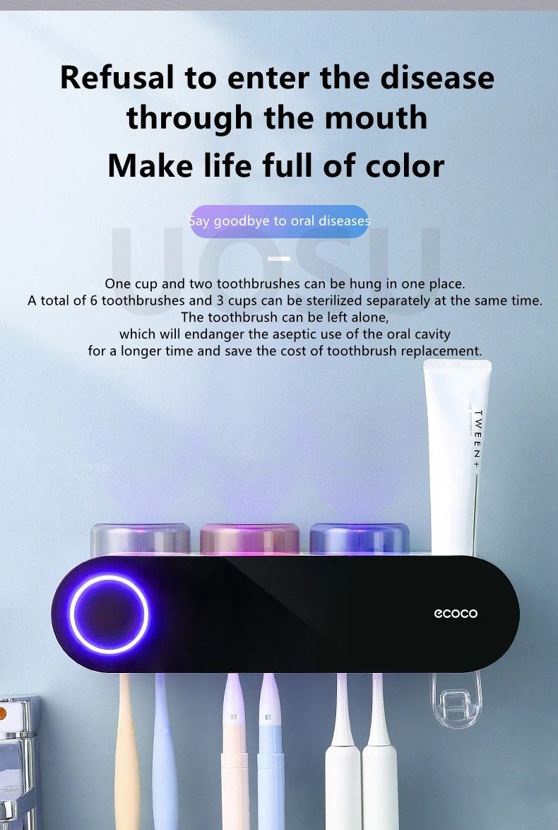 جامسواک دیواری هوشمند Ecoco | استریلیزاسیون UV مسواک مدل E2110